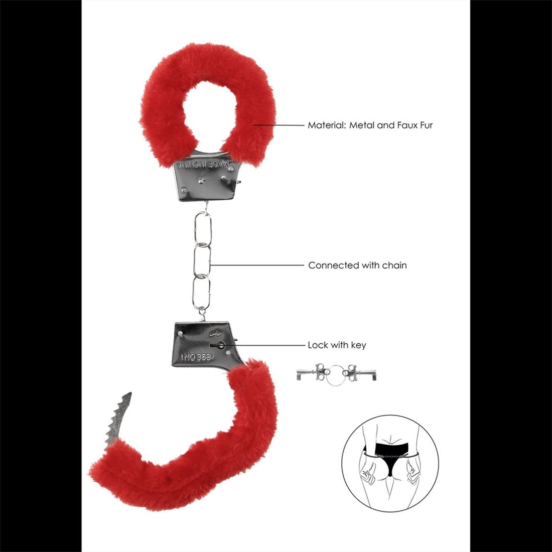 Algemas Com Peluche Beginner's Furry Handcuffs Vermelhas. Umas sensuais algemas com peluche para os principiantes explorarem os prazeres do amor bondage, com um toque de elegância! O mecanismo de bloqueio tem um botão de libertação rápida em caso de ambas as chaves se perderem. Divirta-se e prenda o seu companheiro com as sensuais algemas BEGINNER'SFURRY HANDCUFFS.