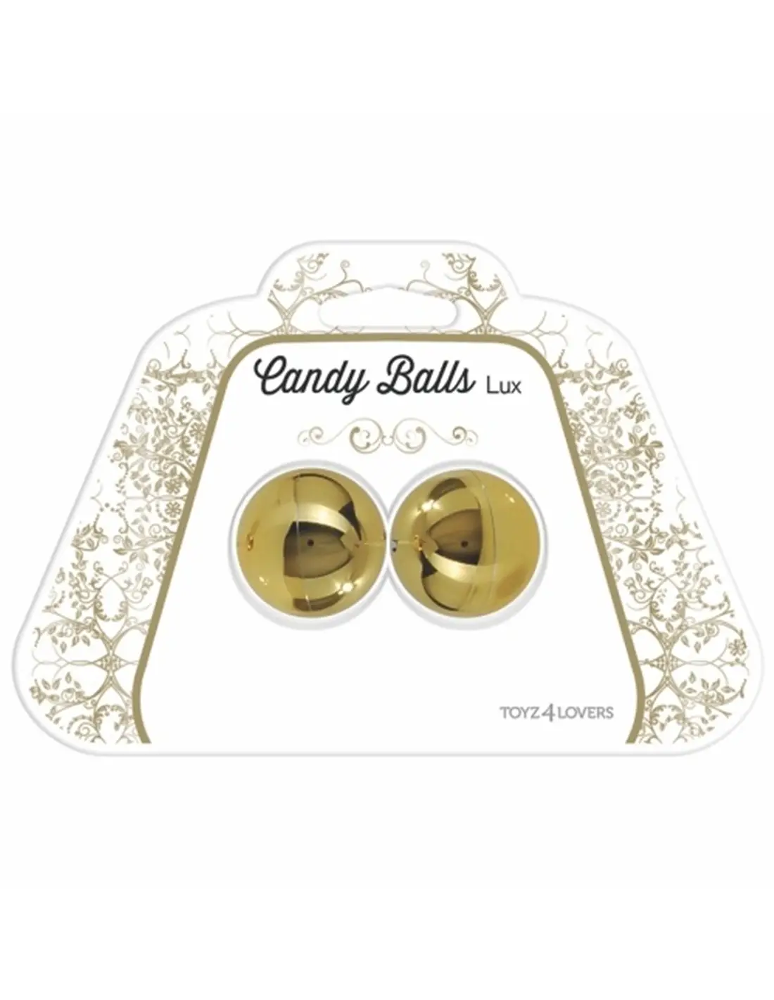 Bolas Vaginais Candy Balls Lux Douradas. As CANDY BALLS LUX são divertidas e sexys! Experimente o prazer da penetração, graças as bolas metálicas no interior, e descubra a emoção de as puxar uma após a outra! Graças ao cordão de remoção, puxar as bolas é seguro e simples. Além disso, a limpeza é rápida e fácil graças à sua superfície lisa.