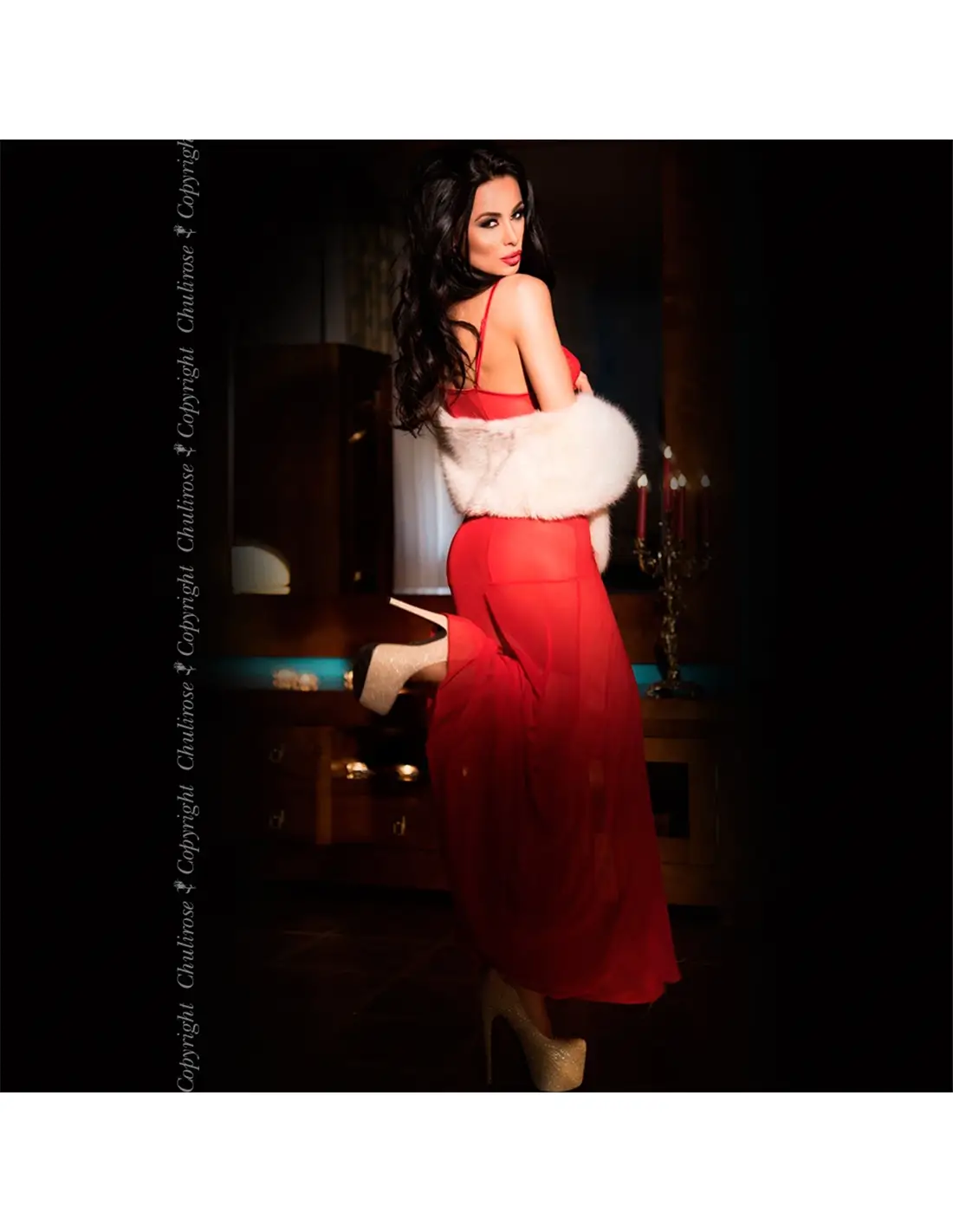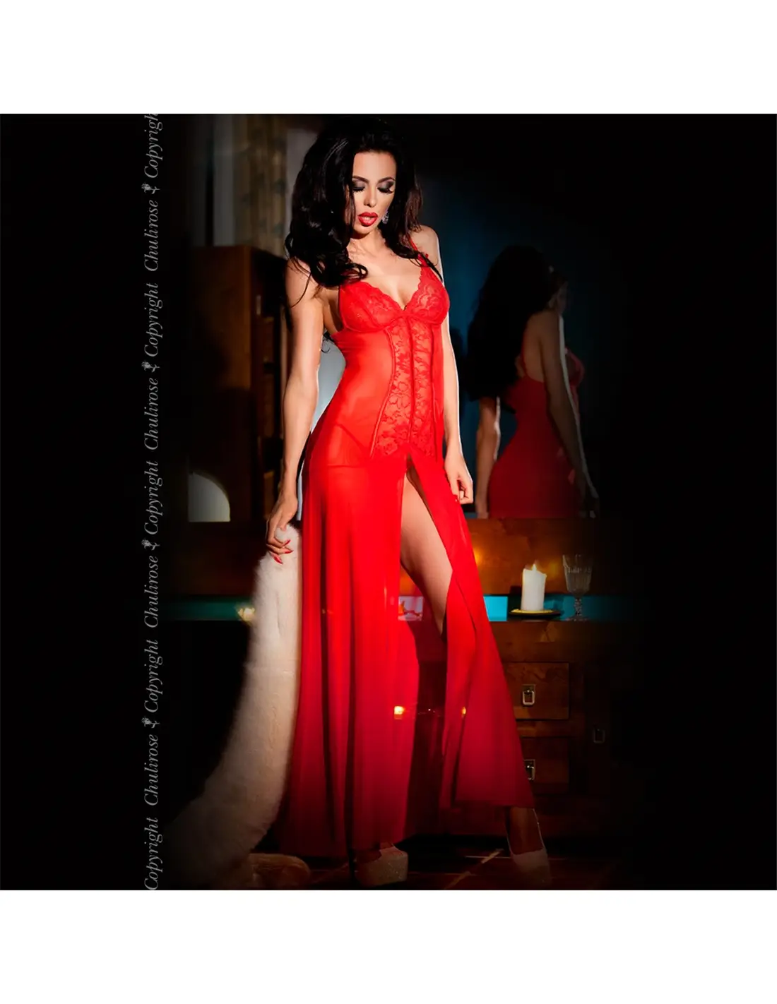 Camisa de Noite e Tanga Cr-3470 Vermelha. Esta camisa de noite comprida, elegante e romântica de toque muito suave, fará parte das suas noites mais quentes. A parte superior é em renda e tem dois bonitos laços de cetim, a parte inferior é feita de tecido ligeiramente brilhante e tem uma abertura na frente para não restringir os movimentos. Alças ajustáveis para assentar de forma perfeita. Sinta-se sexy e confortável! Um produto de alta qualidade da Chilirose, apresentado numa caixa elegante.