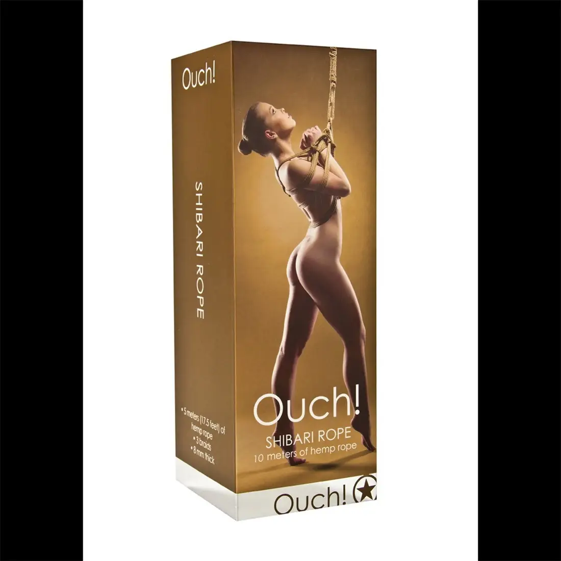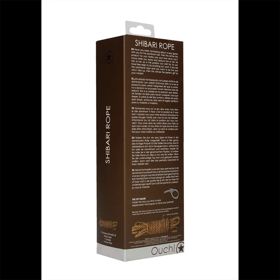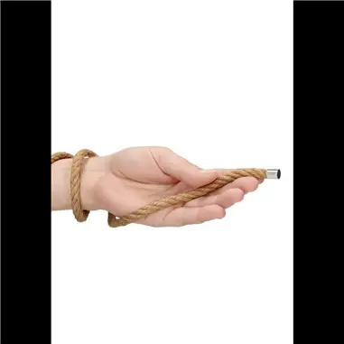 Corda de Restrição Shibari 10 Metros. SHIBARI em japonês significa atar, restringir. Esta é uma corda forte mas razoavelmente suave que mantém os nós com firmeza. O característico cheiro do cânhamo fá-lo-á ansiar o que está para vir. Esta corda usada ao natural pode ser considerada áspera, mas pode amaciá-la de forma simples. Basta fervê-la, lavá-la deixar secar e de seguida colocar um óleo. Este é o material mais utilizado pelos amantes de Shibari no Ocidente. No interior encontrará instruções de como atar o seu submisso.