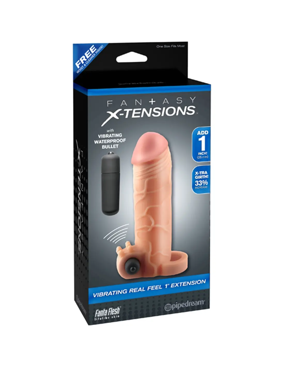 Manga Para O Pénis Vibrating Real Feel 1'' Branca. DESCRIÇÃO:Adicione uma poderosa extensão de 5 centímetros ao seu pénis, e expanda o diâmetro ao mesmo tempo! A extensão para o pénis dar-lhe-á uma sensação muito natural, o que torna difícil notar a diferença entre pele sintética e a real! A textura e a aparência desta manga são extremamente realistas e pode-se adaptar a qualquer tamanho ou forma do pénis, devido à sua grande flexibilidade. Além disso possui uma espécie de anel para os testículos, permitindo maior ajuste e liberdade de movimentos, e uma bala vibratória para estimular o clítoris da sua parceira.