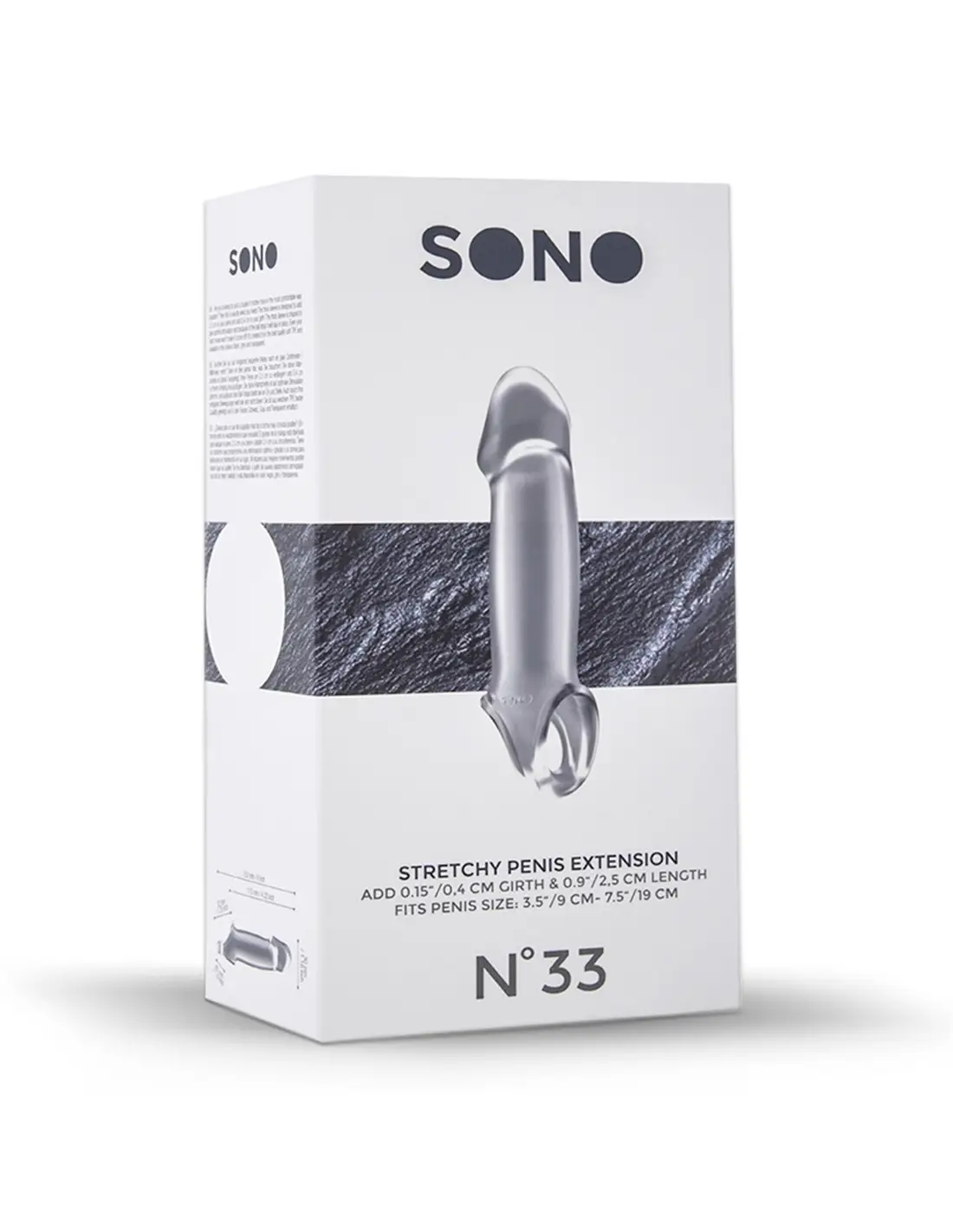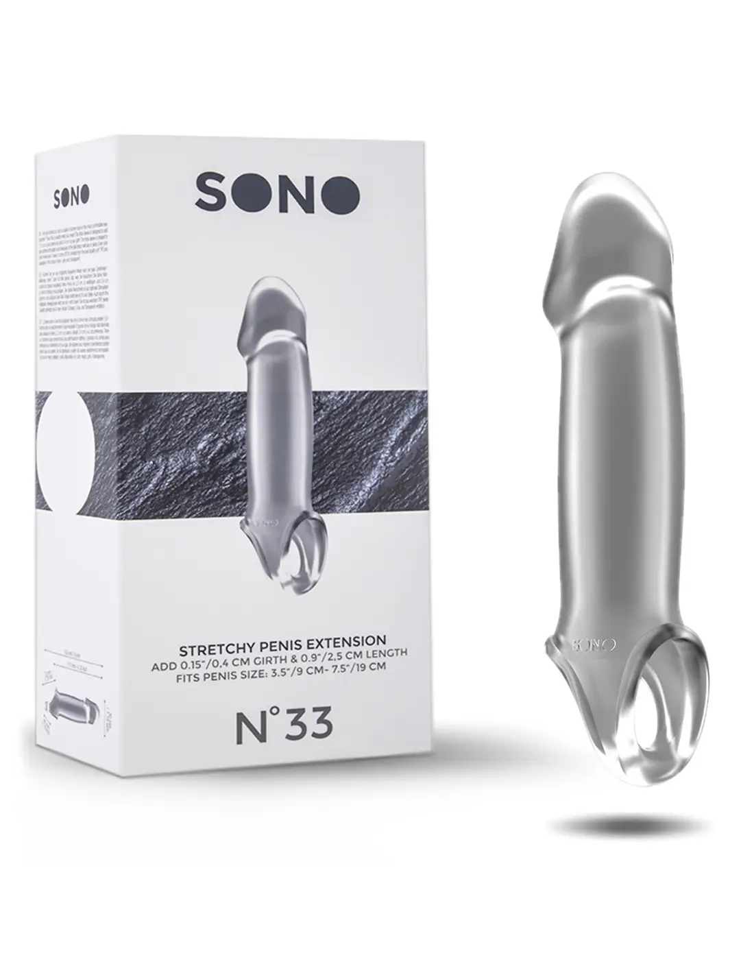 Manga com Extensão para o Pénis Sono Nº33 Transparente. Se está à procura de apenas alguns milímetros a mais do modo mais confortável, então este é o produto para si. Esta manga, com textura realista para um prazer extra, foi moldada para dar uma estimulação perfeita e, devido à alça para os testículos, ficará no lugar mesmo nos momentos mais quentes. Criada a partir do melhor e mais suave TPE. Livre de ftalatos e à prova de água.