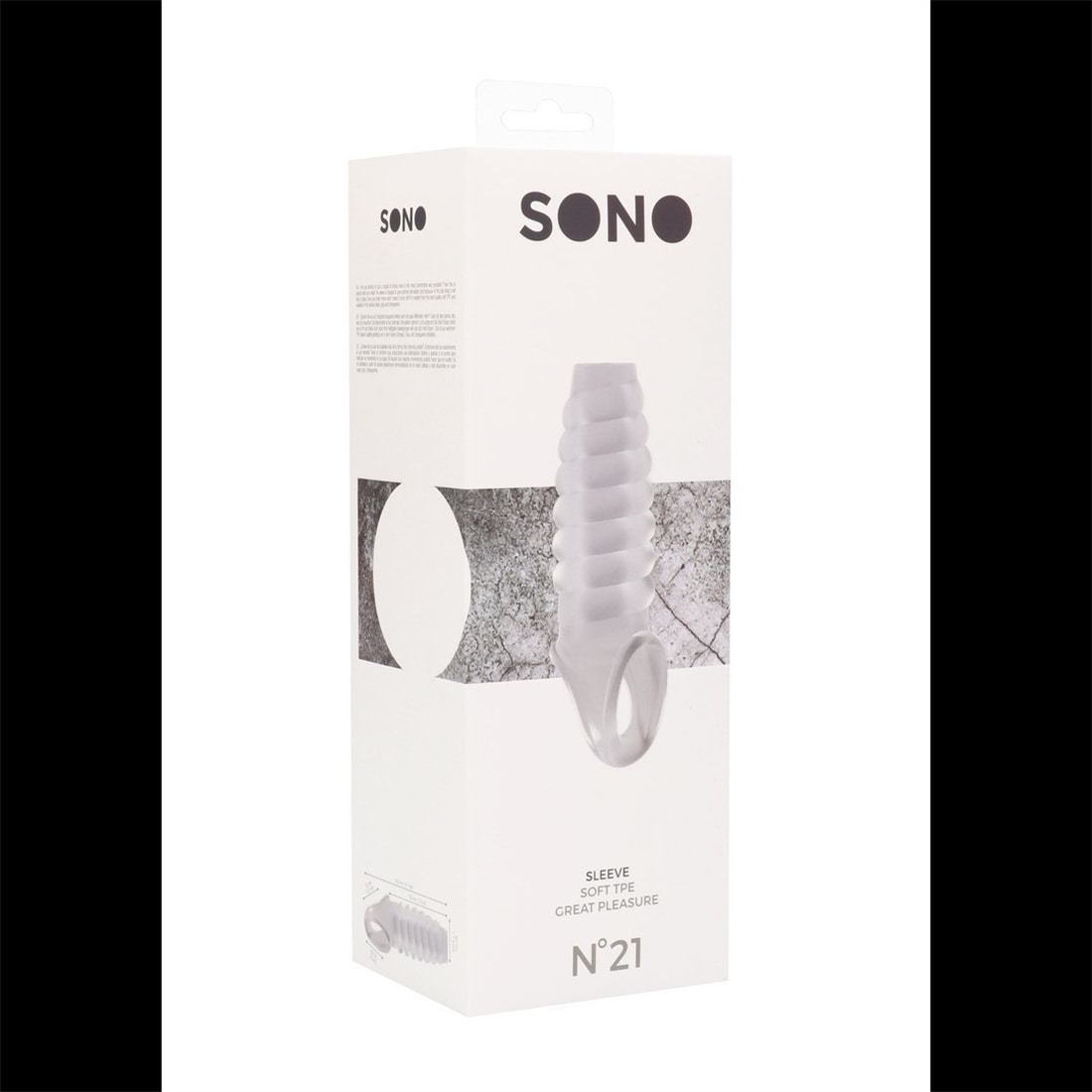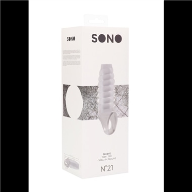 Manga com Extensão para o Pénis Sono Nº21 Transparente. Se está à procura de apenas alguns milímetros a mais do modo mais confortável, então este é o produto para si. Esta manga, com textura ondulada para um prazer extra, foi moldada para dar uma estimulação perfeita e, devido à alça para os testículos, ficará no lugar mesmo nos momentos mais quentes. Criada a partir do melhor e mais suave TPE. Livre de ftalatos e à prova de água.