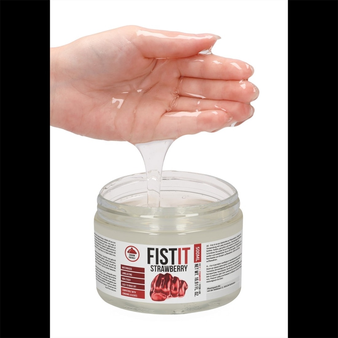Lubrificante para Fisting Fist It Morango 500ml. Se pretende passar as suas brincadeiras com brinquedos eróticos, e o sexo anal para um patamar muito mais elevado, então o lubrificante para fisting FIST ITMORANGO é perfeito para isso.Este lubrificante à base de água foi concebido exclusivamente para o fisting. Graças à sua espessura poderá apreciar o limite do prazer sem dor. Este produto foi dermatologicamente testado, não é gorduroso, sabe a morango mas não tem cor.