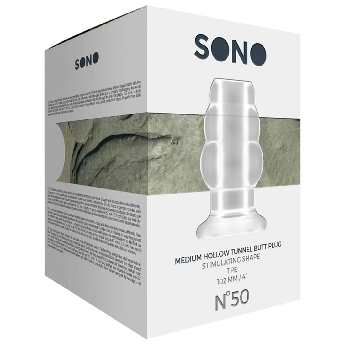 Plug Anal Medium Hollow Tunnel Sono Nº50 Transparente. Este plug anal muito original vai levar a sua vida sexual a um nível completamente diferente! Caracteriza-se pelos três anéis de diferentes tamanhos no exterior. Possui no topo um anel mais pequeno e quanto mais o inserir, mais largo é! O túnel interior vai permitir inserir o que lhe apetecer no momento, ou simplesmente ter uma vista privilegiada. É perfeito para utilizadores mais experientes devido às suas dimensões.