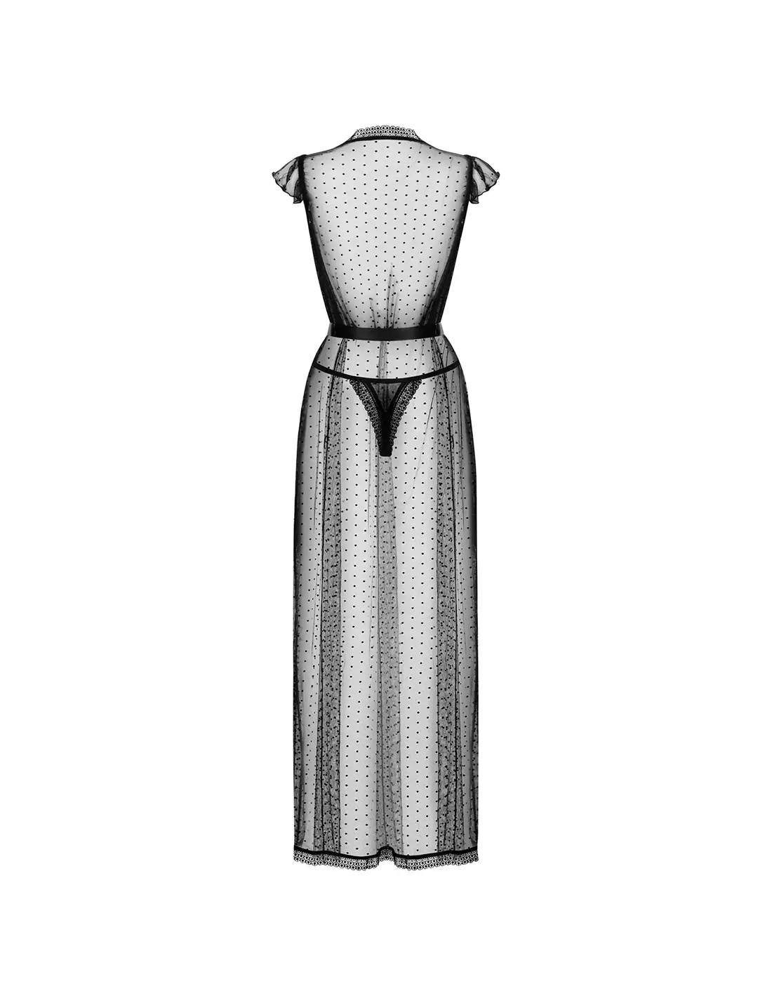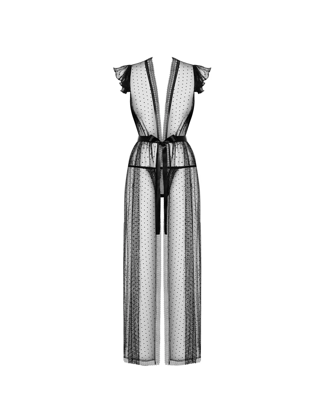 Robe 876-Pei Obsessive Preto. Elegância sensual? Está mesmo aqui! Olhe para este fabuloso e longo robe. Ele dar-lhe-á uma aparência realmente deslumbrante e muito charme feminino! Irá sentir-se absolutamente fantástica...Mais detalhes? Veja aqui:- incrivelmente elegante, robe longo;- mangas com folhos - visual coquete;-fita de cetim brilhante - cintura enfatizada;- comprimento maxi - aparência ultra elegante e sexy garantida;- corte decorativo;- tecido Multistretch elástico e de ótima qualidade - conforto de uso completo e ótimo ajuste garantido;- cueca de fio dental com pingente brilhante incluído;- adorno de metal não inclui níquel - NickelFree em 100%;- tecido macio e agradável ao toque (90% poliéster, 10% elastano).