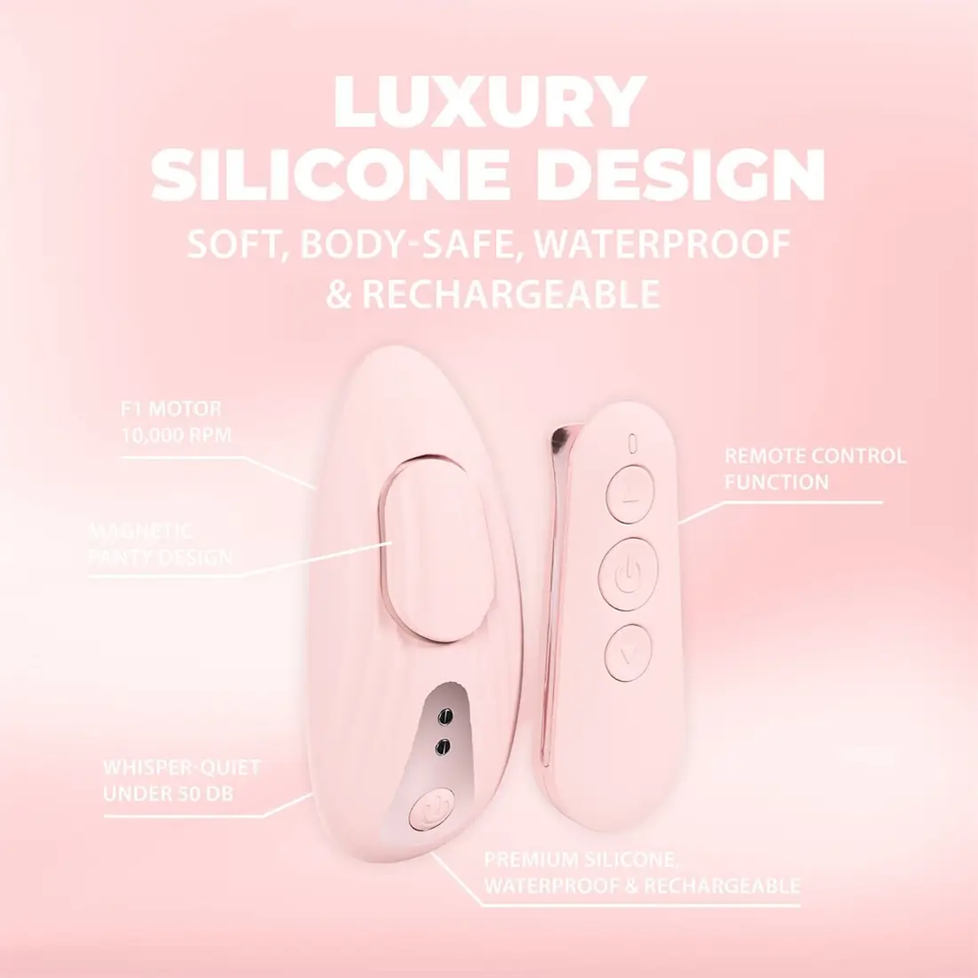 Vibrador de Cueca com Comando Céleste Rosa Loveline. O Céleste, da Loveline International – Coleção Paris, é um vibrador com 10 funções que se fixa magneticamente às cuecas.